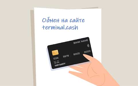 Фото карты и паспорта на фоне листа с надписью: Обмен на сайте terminal.cash". На фотографии должно быть четко видно: номер карты, фото в паспорте, ФИО, дату рождения, серию и номер паспорта, надпись на листе.